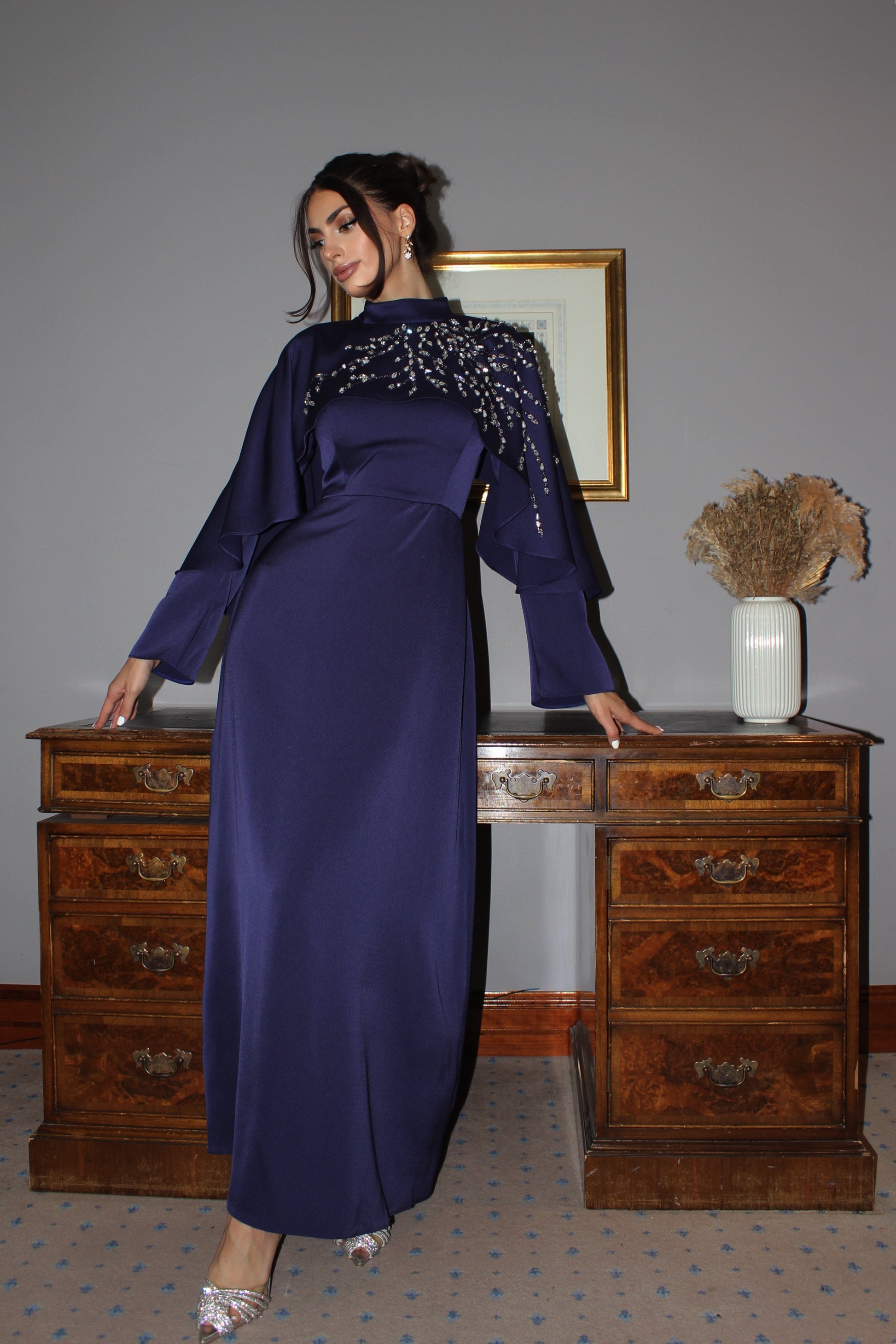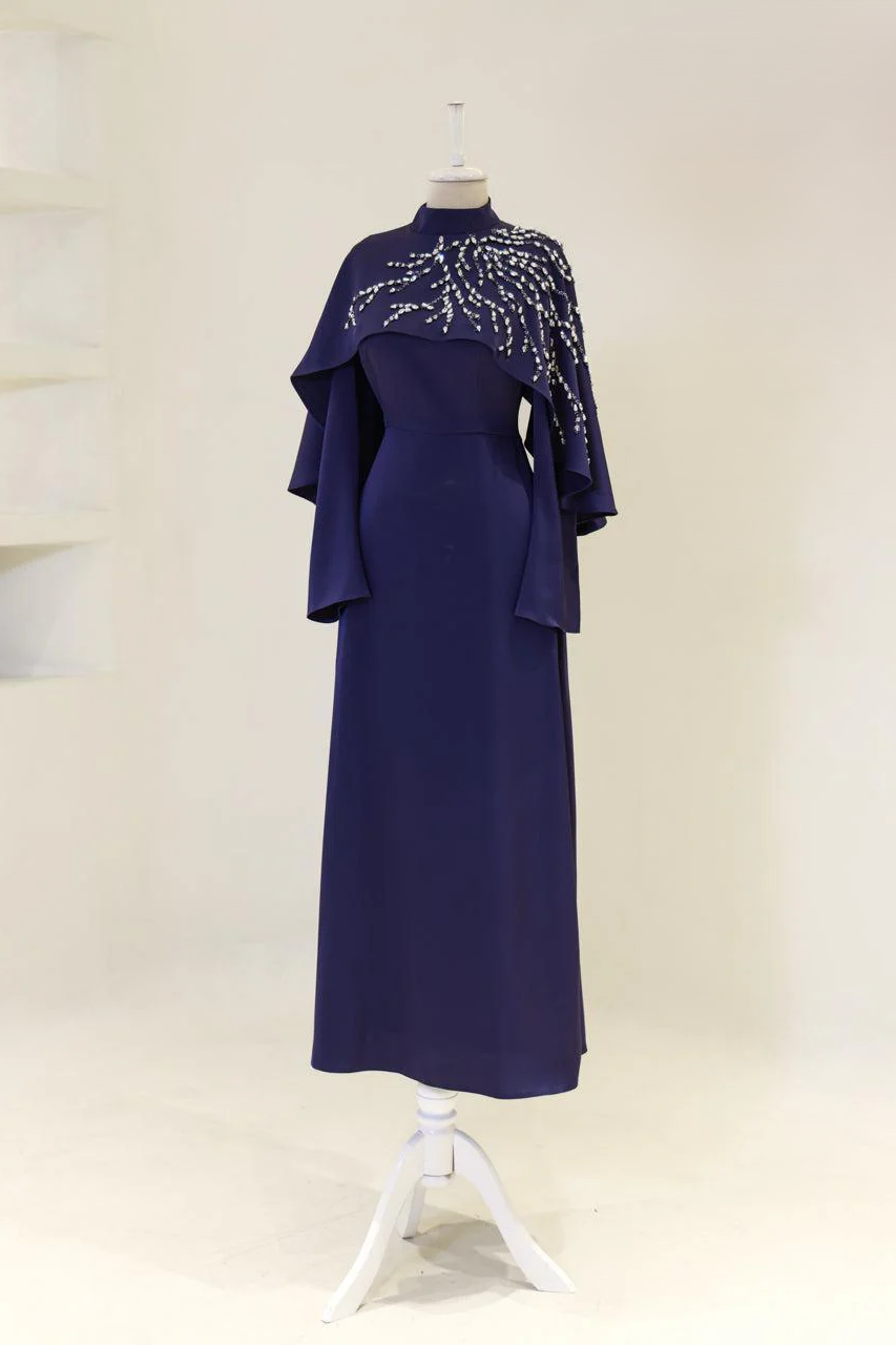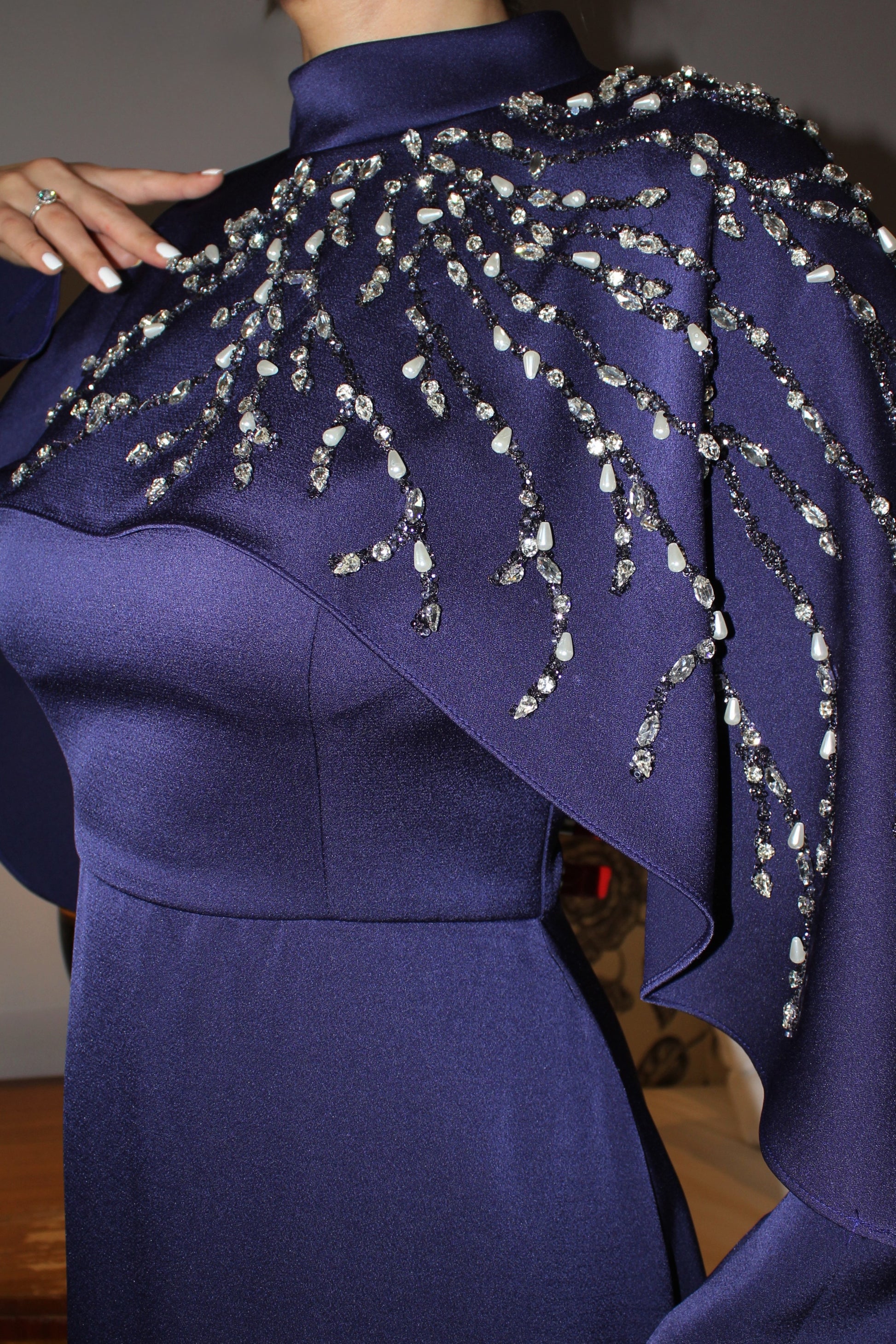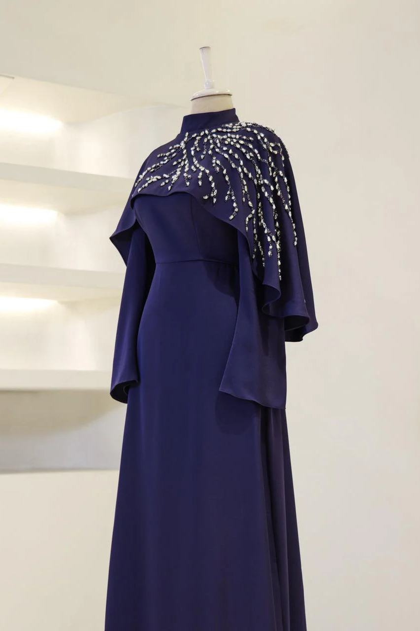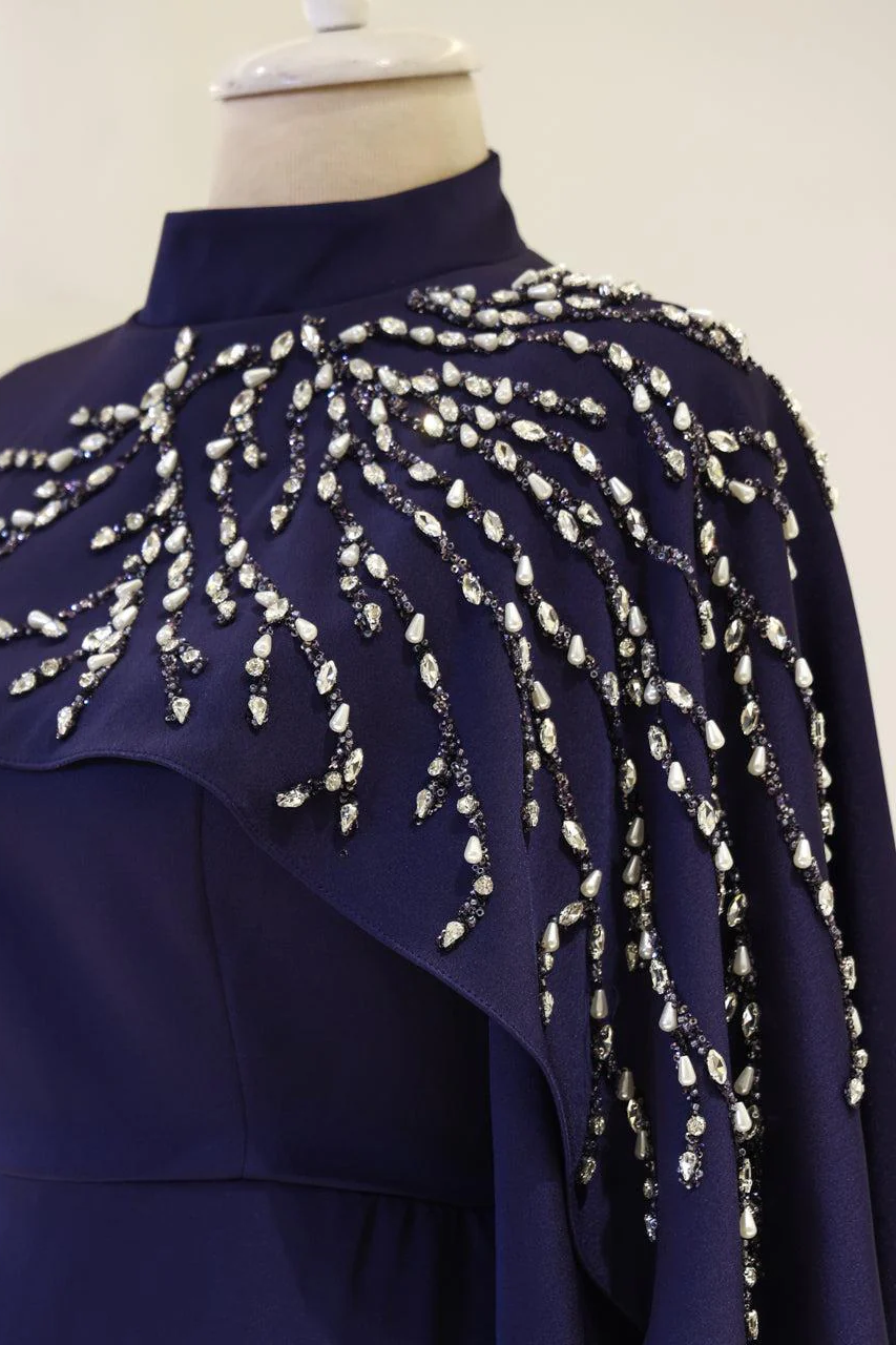 • Nicht abnehmbares Cape mit funkelnden Perlen- und Steinverzierungen