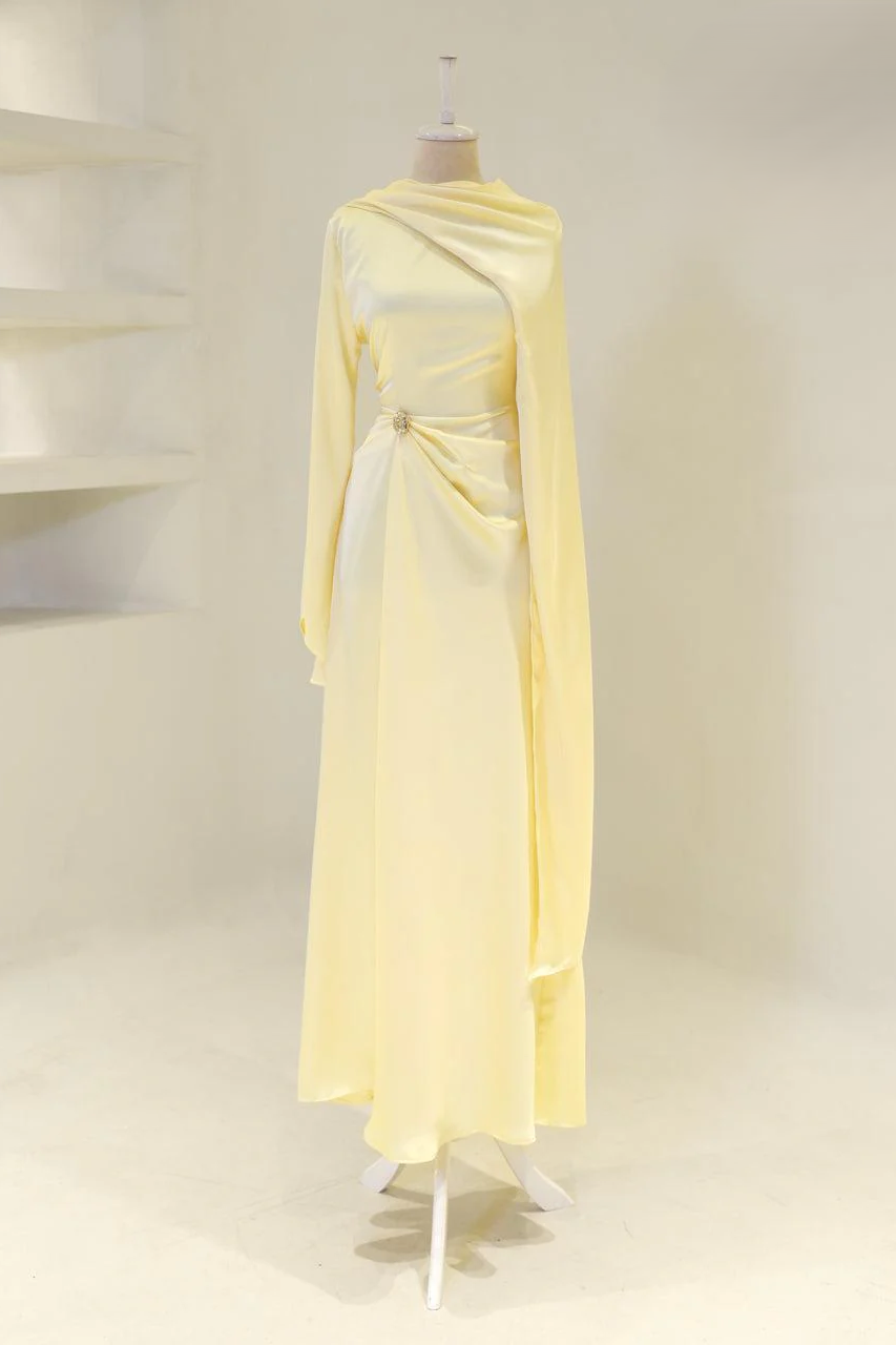 • Inklusive separatem, ärmellosem Unterkleid in Maxilänge und Brosche