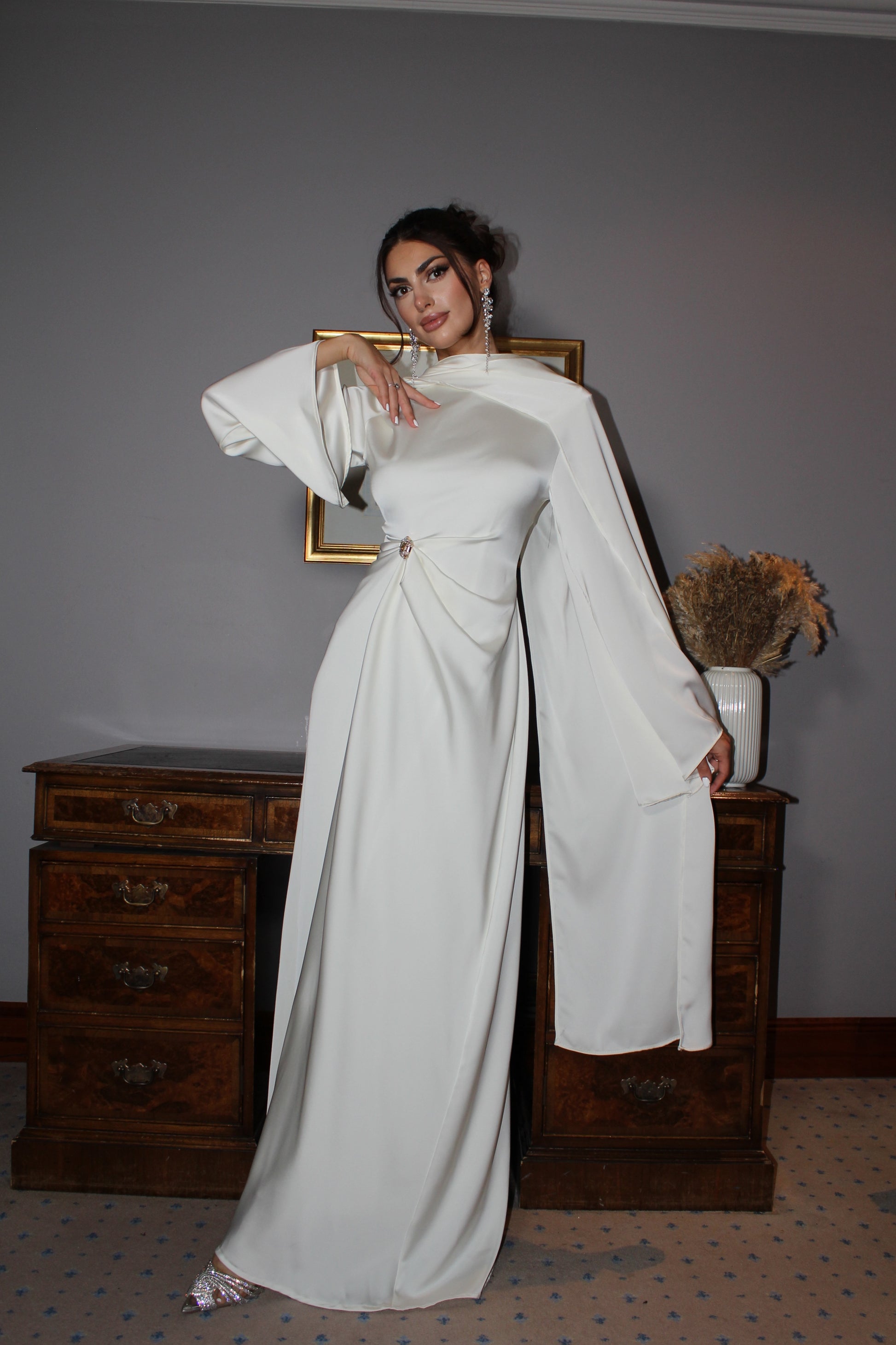 • Inklusive separatem, ärmellosem Unterkleid in Maxilänge und Brosche