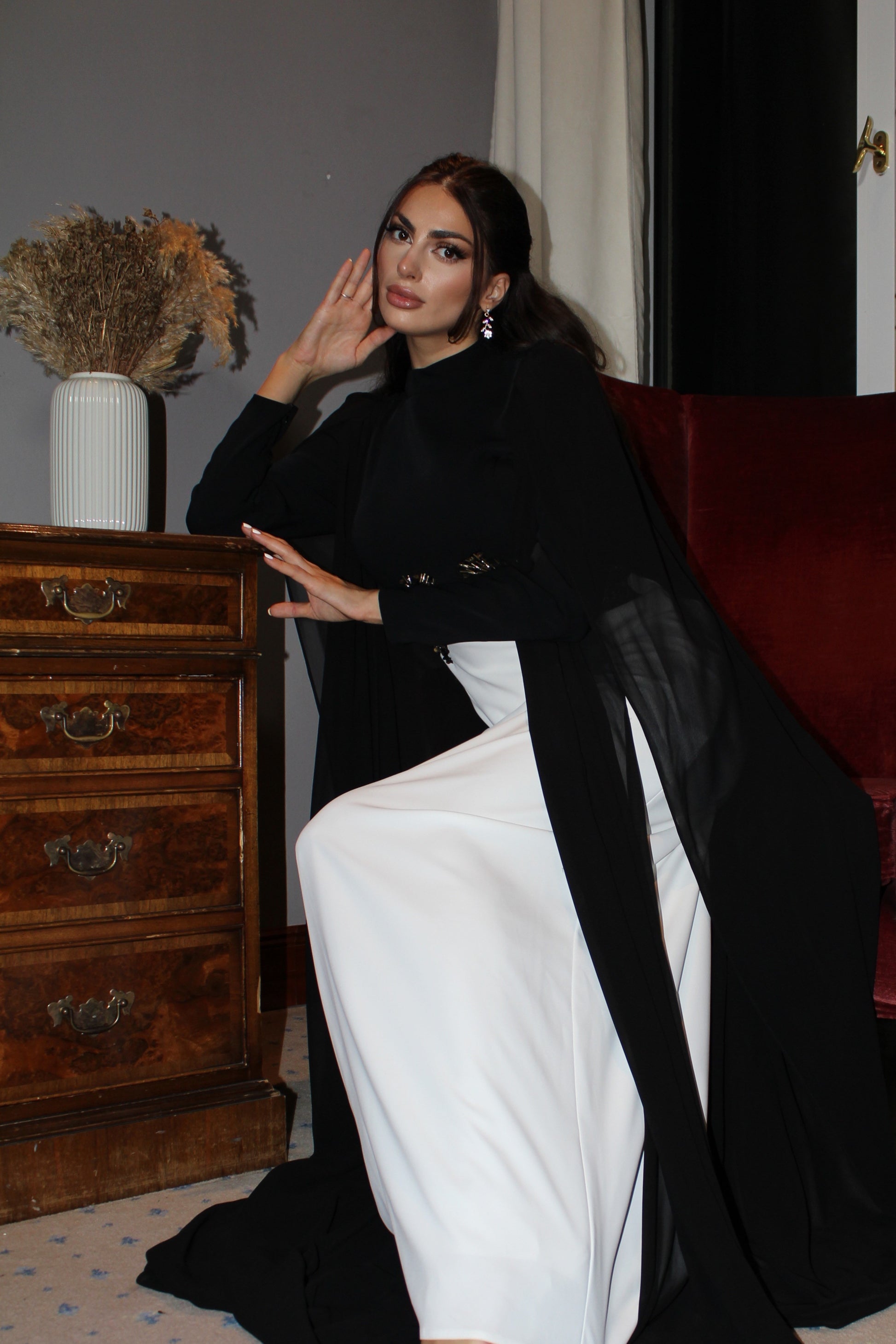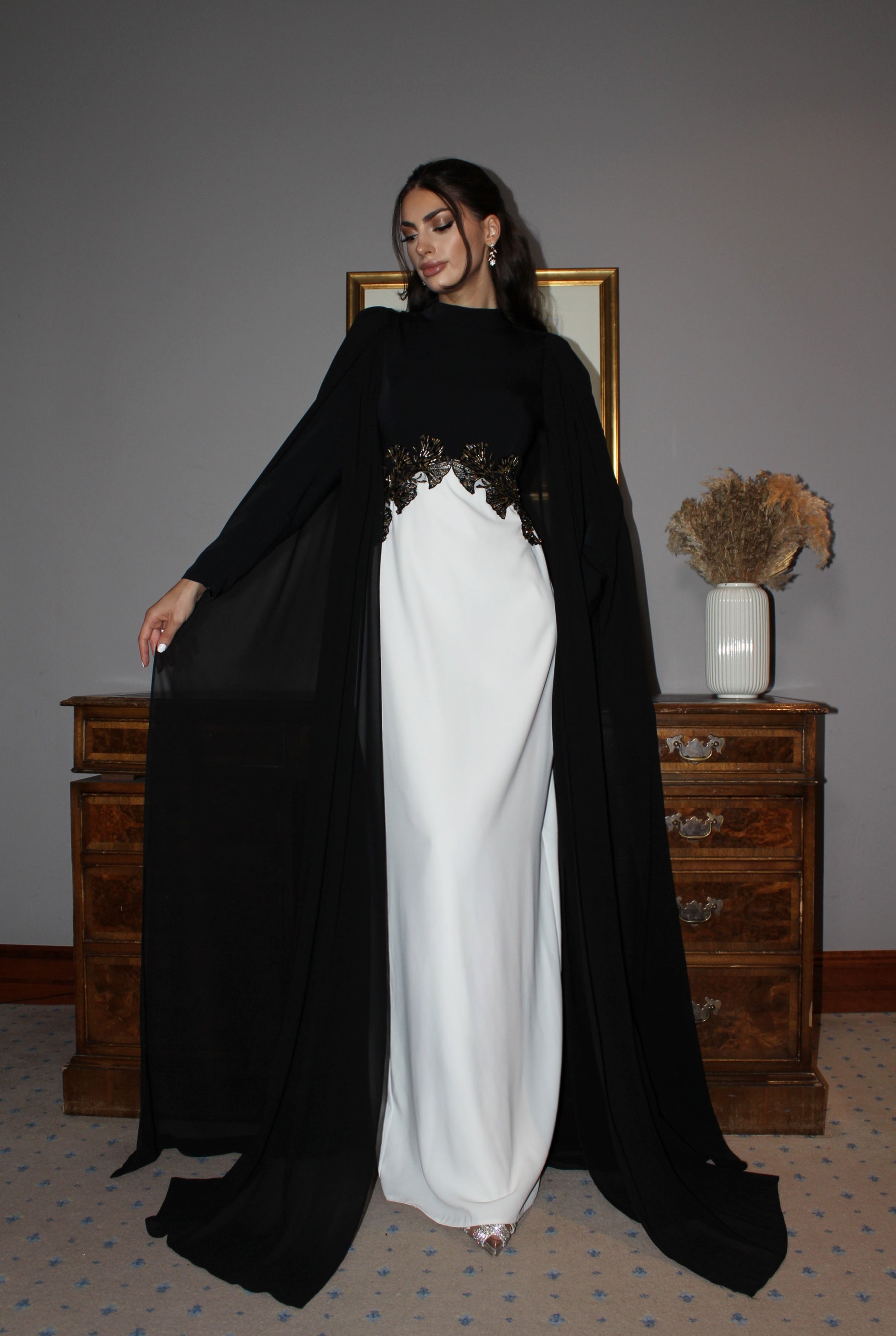 - Fließendes Chiffon-Cape, das den Rücken vollständig bedeckt